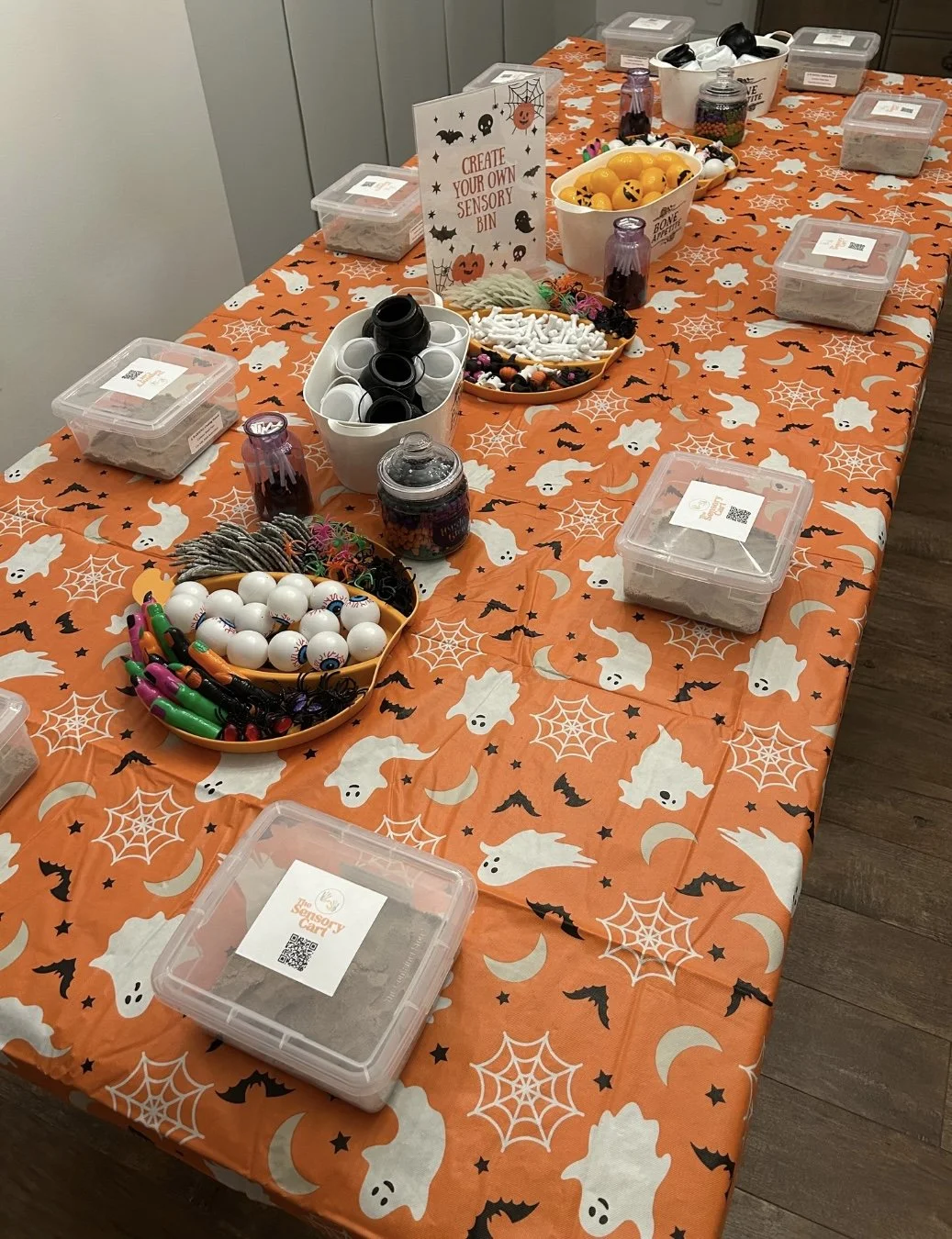 Interactive Station: During the event, kids visit The Sensory Cart where they get to scoop, pour, and choose from a variety of colorful, textured, and themed materials. With guidance and inspiration, each child creates their very own customized sensory bin choosing fillers, mini figurines, tools, and more.
